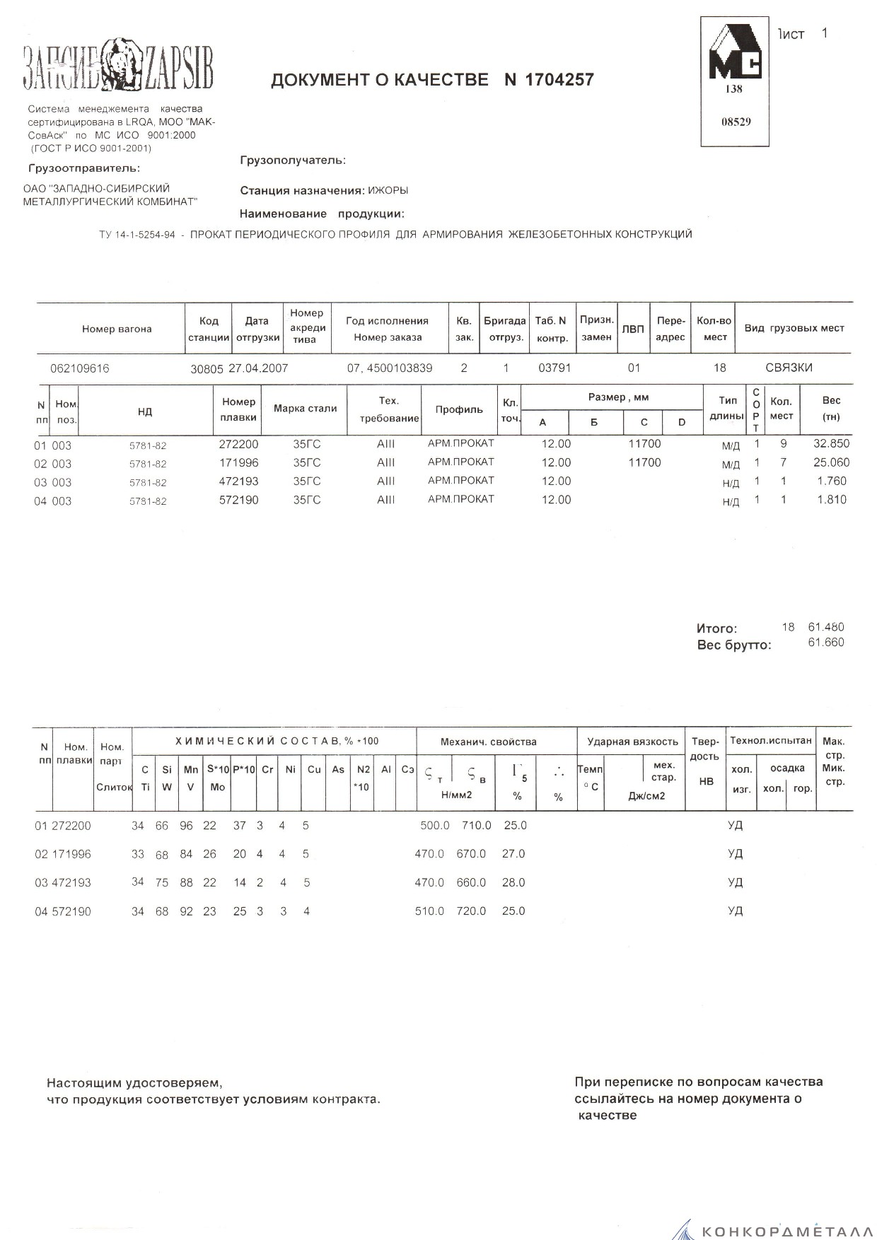С каждой товарной позицией мы предоставляем все сертификаты и паспорта качества, а также товарно-транспортную накладную.